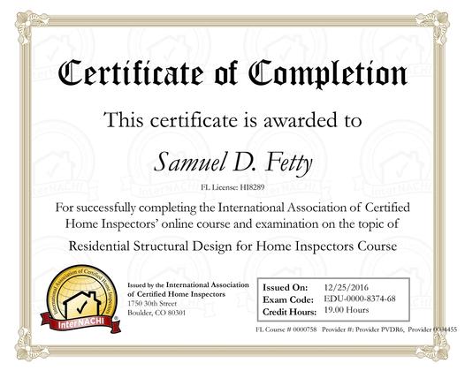 With over 42 years experience in the construction and inspection fields, over 600 hours of inspection specific training, a never ending commitment to continuing education, coupled with International Code Council Certified Residential Building Inspector, Certified Master Inspector, International Association of Certified Home Inspectors Certification and State of Florida Home Inspectors License. We also continue our education every quarter to keep up with the constantly changing building and inspection techniques. You can feel confident with your decision to allow us the honor of inspecting your property. I am also a proud 3 time recipient of the Gerry Beaumont Award.